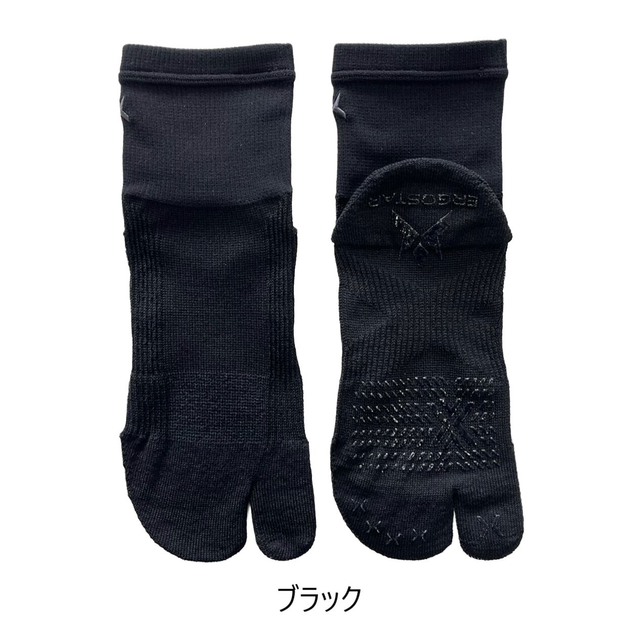 クロステーピングソックスのタビ型ミドル丈モデル。素材にエルゴスター独自の"紙糸"を使用しています。シャリ感のある独特の肌触りで、濡れてもべたつかず、ドライな履き心地が続きます。高い吸放湿性で蒸れを抑え、マメなどのスキントラブルも防ぎます。くるぶしをしっかりと覆う安心感のある丈の長さで、ロングタイツやゲイターとの隙間も開きません。ドライな履き心地の紙糸は足首から下だけに使用。足首から上は柔らかく強度のあるナイロン糸に切り替えています。